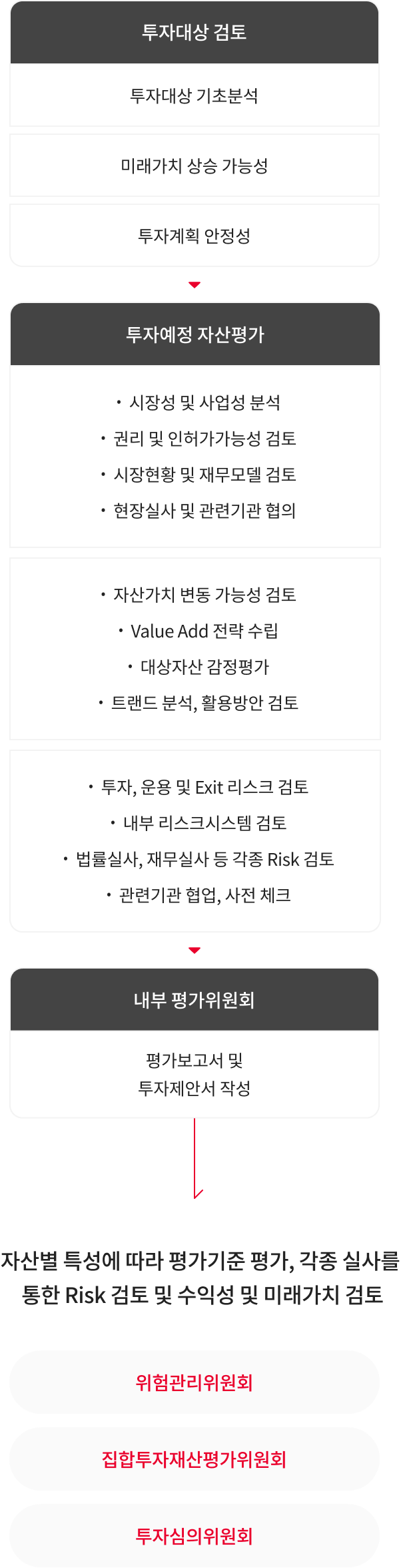 자산별 특성에 따라 평가기준 평가, 각종 실사를 통한